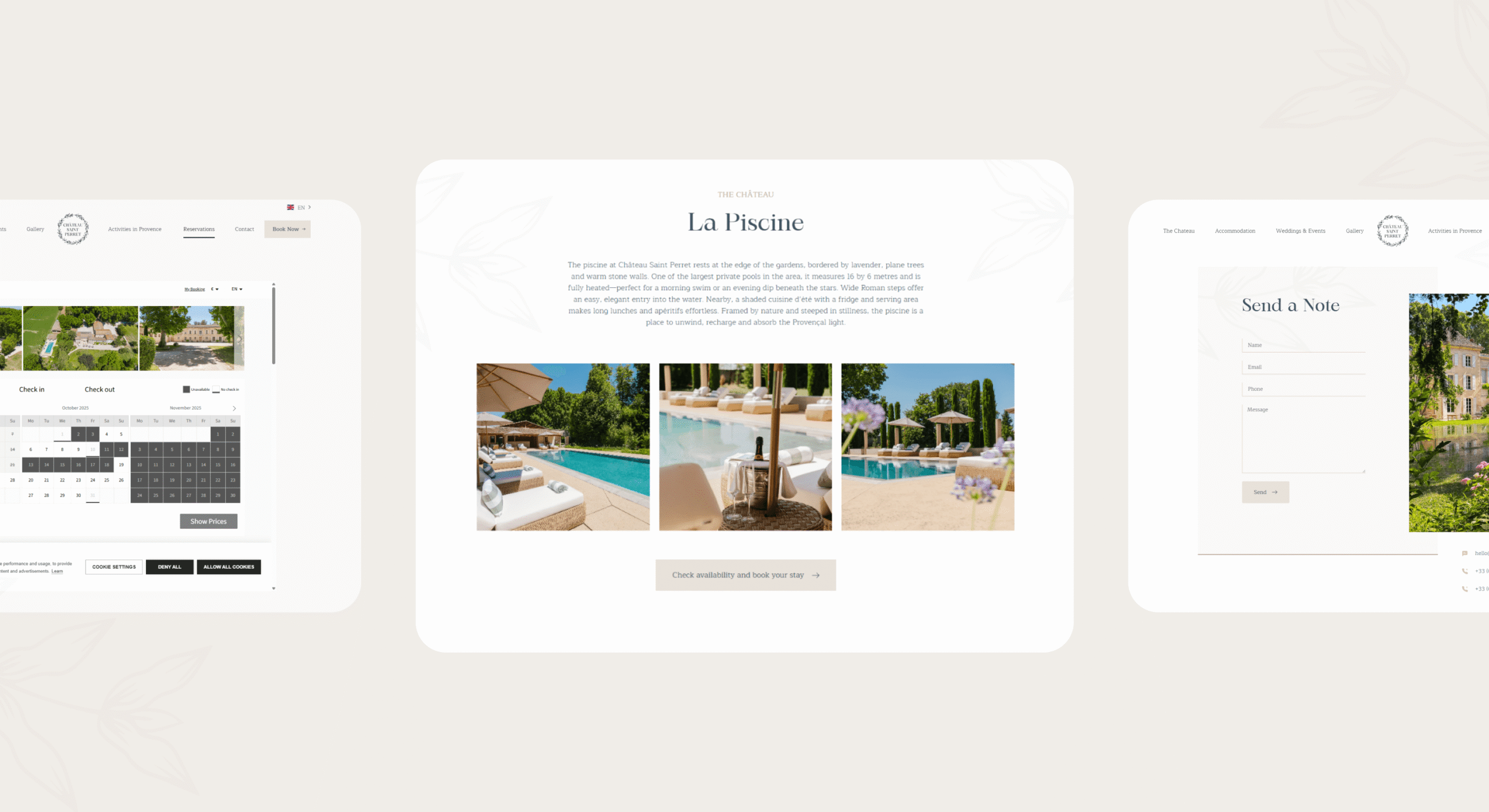 When Louise first met with us, she shared her ideas, mood board and a collection of photographs that captured the château’s unique atmosphere. This gave us a clear vision of the elegant and tranquil retreat she wanted to bring to life online.