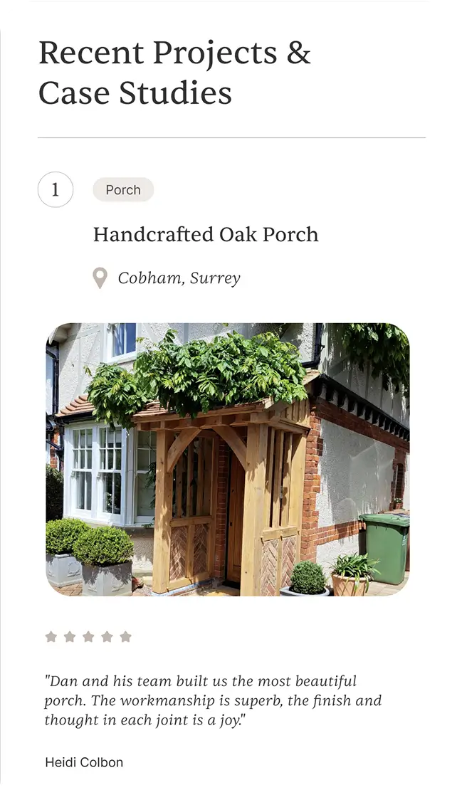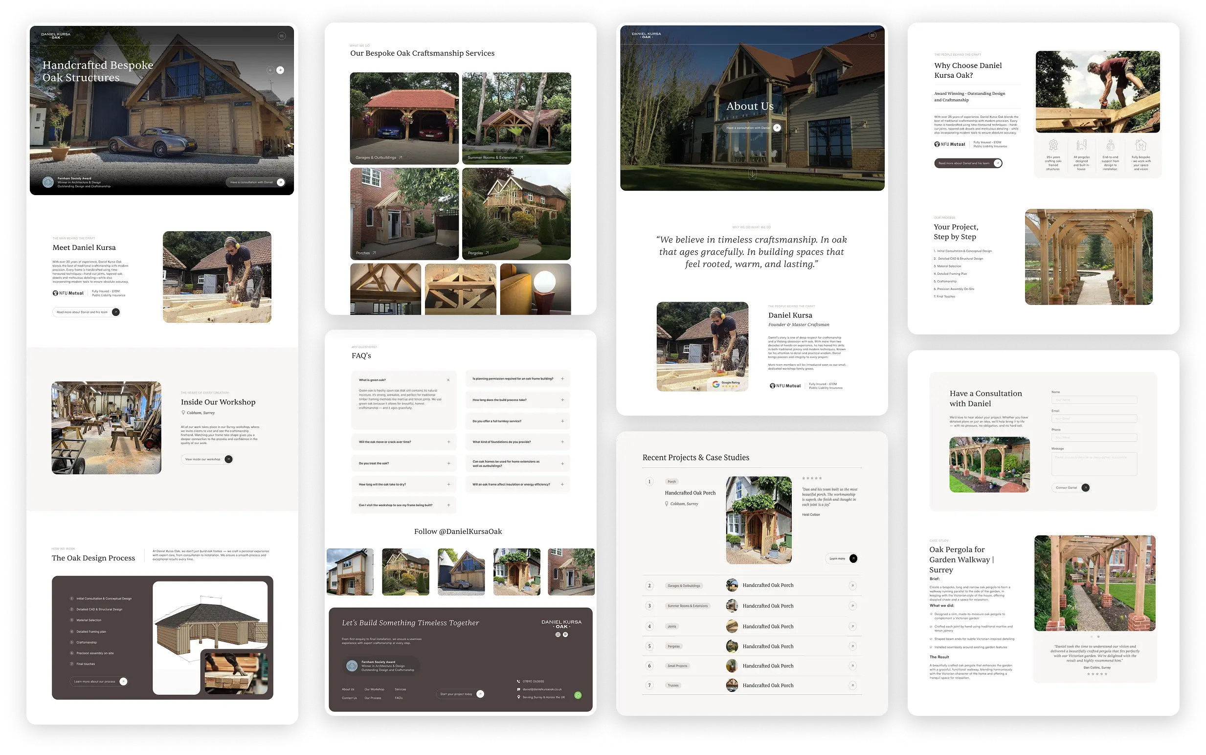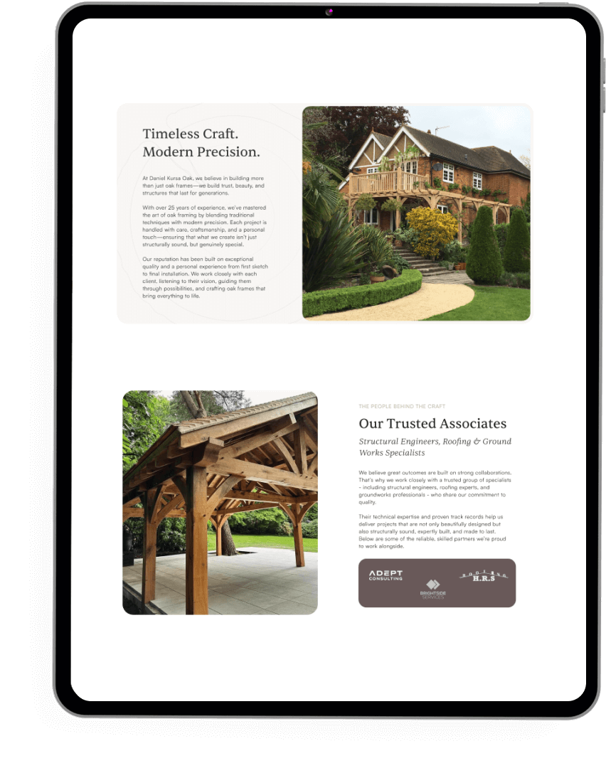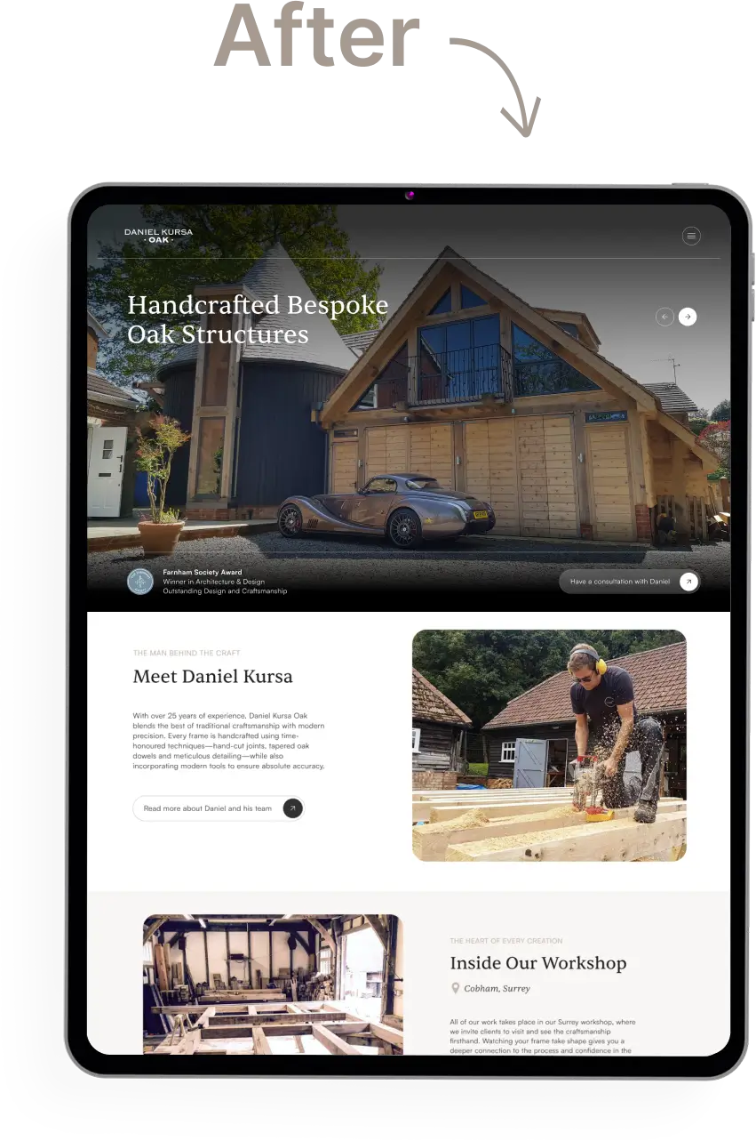 We partnered with Daniel to create a clean, characterful website that brings his portfolio to life, showcasing his builds with clarity and warmth. Built to reflect the handmade quality of his work, the site is simple to navigate, mobile-friendly and designed to grow as his body of work expands.